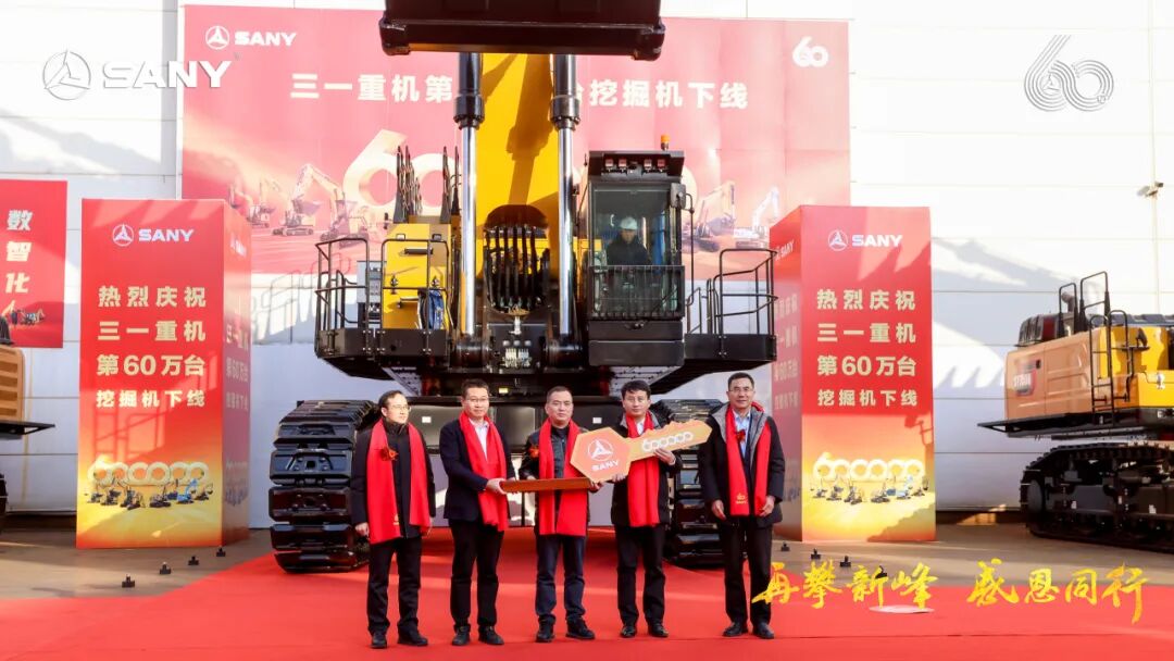 三一重機從2002年首臺挖掘機問世,歷經23載砥礪,達成全機型挖掘機60萬臺銷量新高。(截至2024年底)