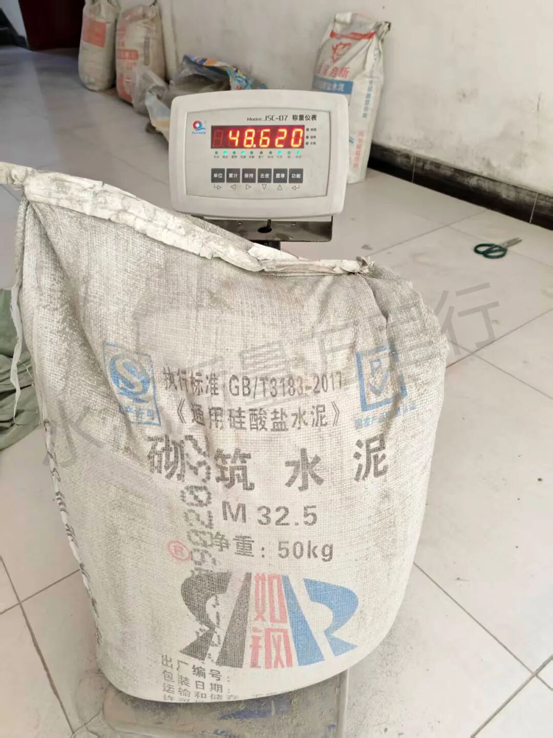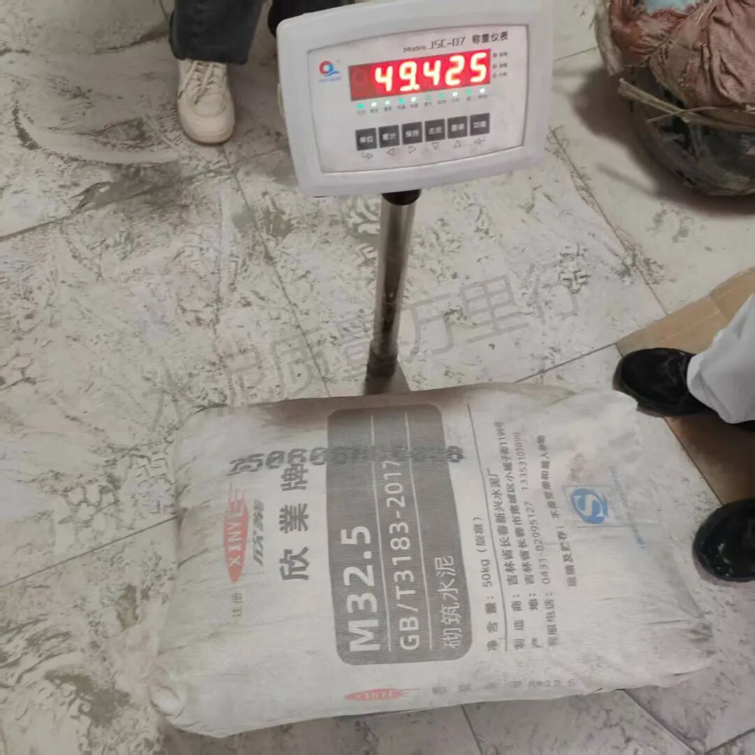吉林省長春新興水泥廠“欣業(yè)”牌M32.5標(biāo)稱50kg實(shí)測47.565kg、47.650kg、48.805kg、49.425kg、49.355kg